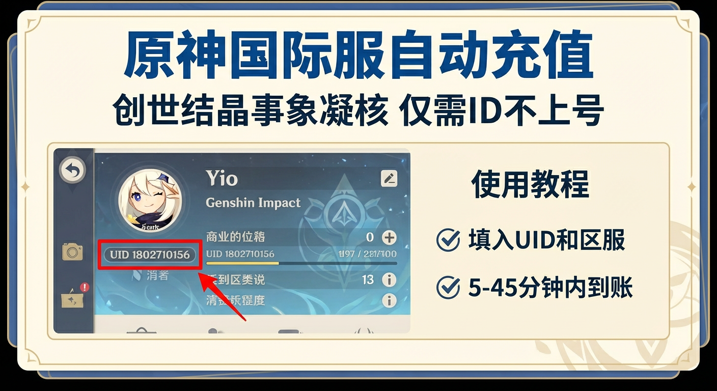 原神国际服自动充值创世结晶事象凝核仅需ID不上号